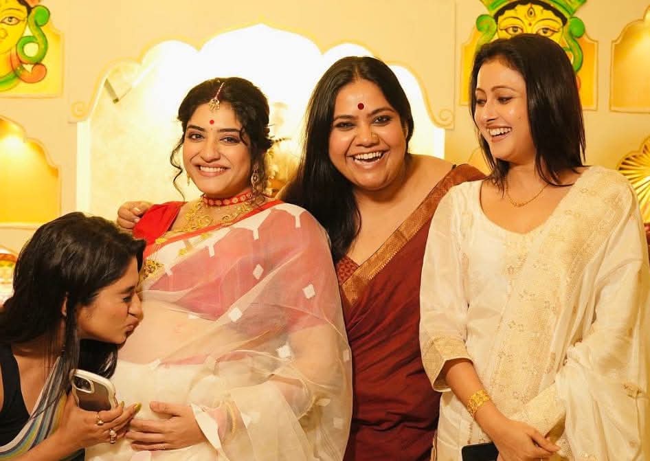 সাত মাসের সাধ খেলেন অভিনেত্রী মানসী সেনগুপ্ত! নিজেই গাড়ি চালিয়ে অনুষ্ঠানে এলেন অন্তঃসত্ত্বা। কারাই বা উপস্থিত ছিলেন অভিনেত্রীর এই বিশেষ দিনে? গত রবিবার শহর কলকাতার একটি নামী রেস্তরাঁয় সাধের অনুষ্ঠানে মাতলেন জনপ্রিয় ধারাবাহিক ‘নিম ফুলের মধু’র মৌমিতা। এ দিন ‘বড় জা’কে সাধ খাওয়াতে হাজির হয়েছিল ‘দত্ত বাড়ির’ পর্ণা। এ দিন লাল পেড়ে সাদা শাড়িতে সেজে অনুরাগীদের সামনে হাজির হয়েছিল মৌমিতা ওরফে রিয়েল লাইফের মানসী, এছাড়া খোপায় ছিল ফুল ও ছবিতে আবার গলায় মালা পড়তেও ভোলেননি তিনি। এদিন রিল লাইফের সঙ্গীদের পাশাপাশি তাঁর বিশেষ দিনে হাজির ছিলেন মেয়ে বোন ও পরিবারের সদস্যরা। বলাবাহুল্য দ্বিতীয়বার মাতৃত্বের স্বাদ উপভোগ করতে পেরে বেজায় খুশি অভিনেত্রী।